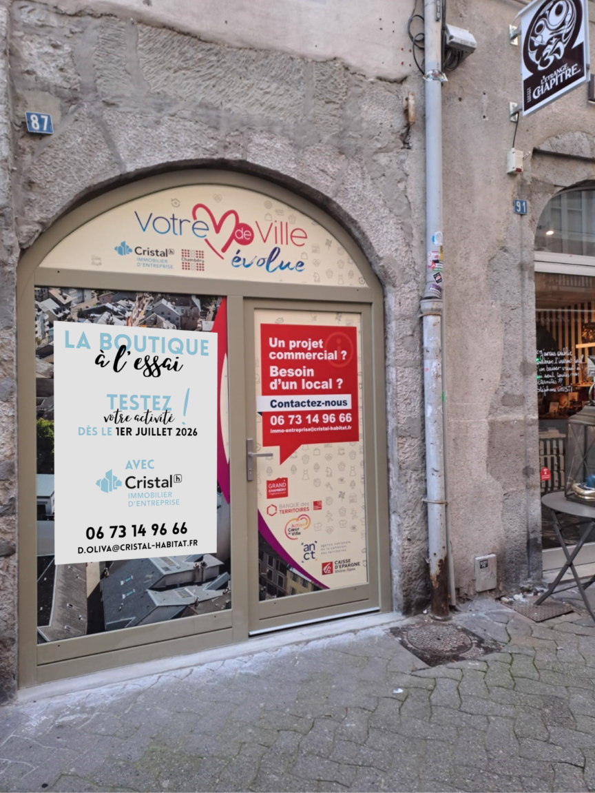 À compter du 1er juillet, Cristal Immobilier d’entreprise met à disposition une boutique à l’essai située 87 rue Croix d’Or, en plein centre historique de Chambéry, à proximité immédiate de la place Saint-Léger.