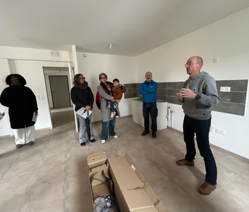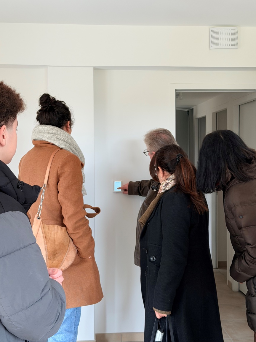Avant leur emménagement, les futurs locataires ont participé à une visite pédagogique aux côtés du chargé d’opération Patrick Chaloyard, du chargé de patrimoine Stéphane Mathieu, de l’installateur du système l’entreprie Adéquat et de l’entreprise de maintenance Avipure. Un manuel utilisateur leur a été remis afin de faciliter l’appropriation des bons usages et de garantir un fonctionnement optimal du logement dès l’entrée dans les lieux.
